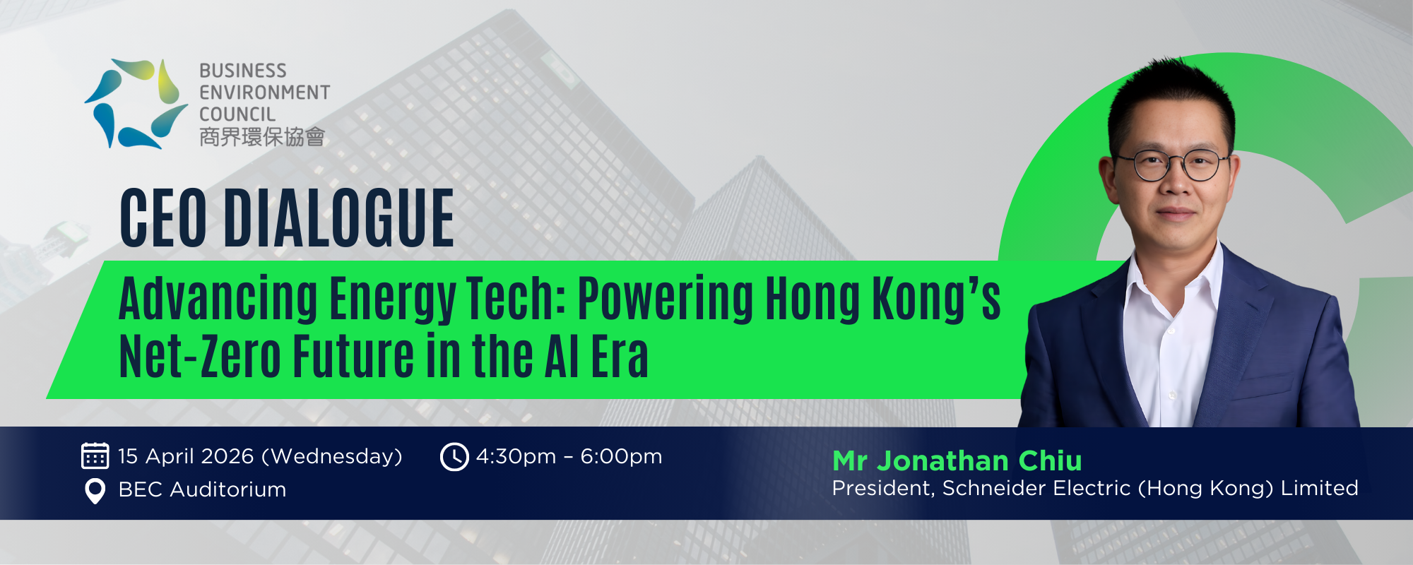 BEC CEO Dialogue is a signature event of BEC aiming to provide a platform for idea exchange and experience sharing among business leaders and senior executives. Prestigious CEOs from renowned companies and organisations are invited as honourable guests to share their valuable insights on topics related to environmental excellence and sustainability in Hong Kong.