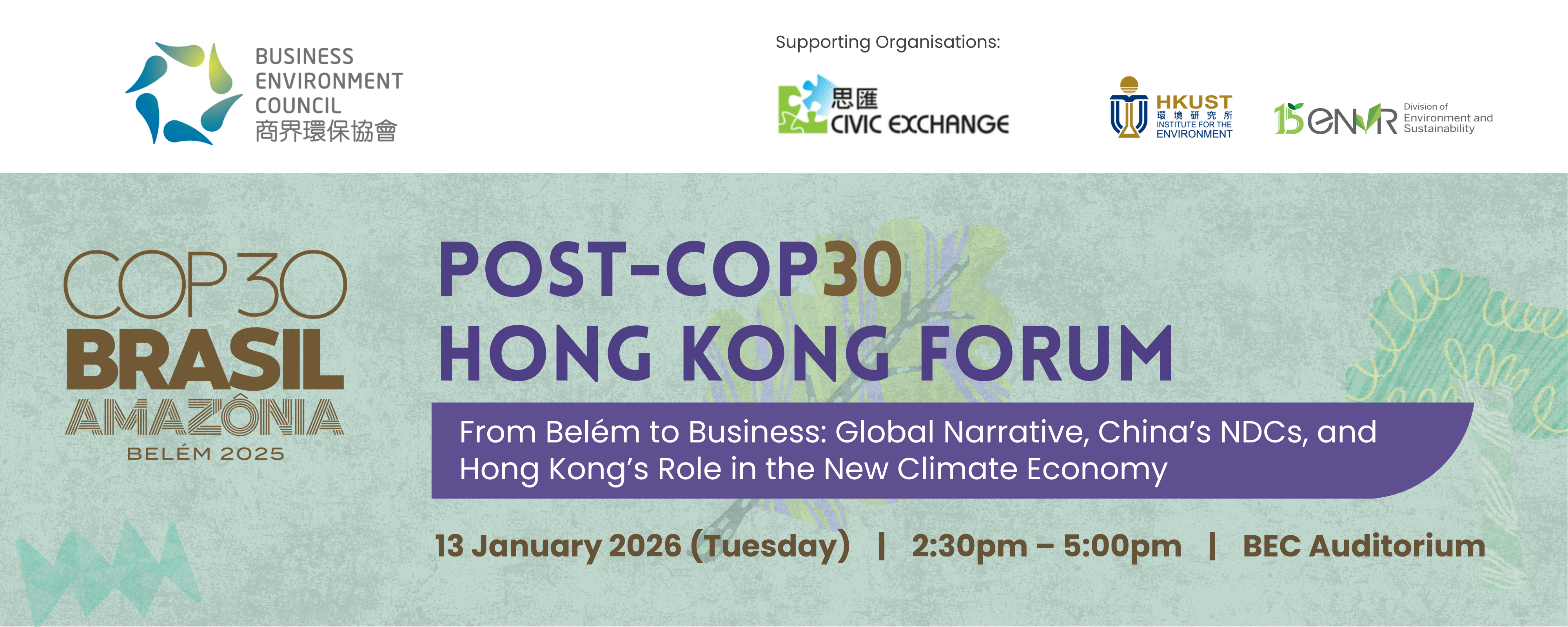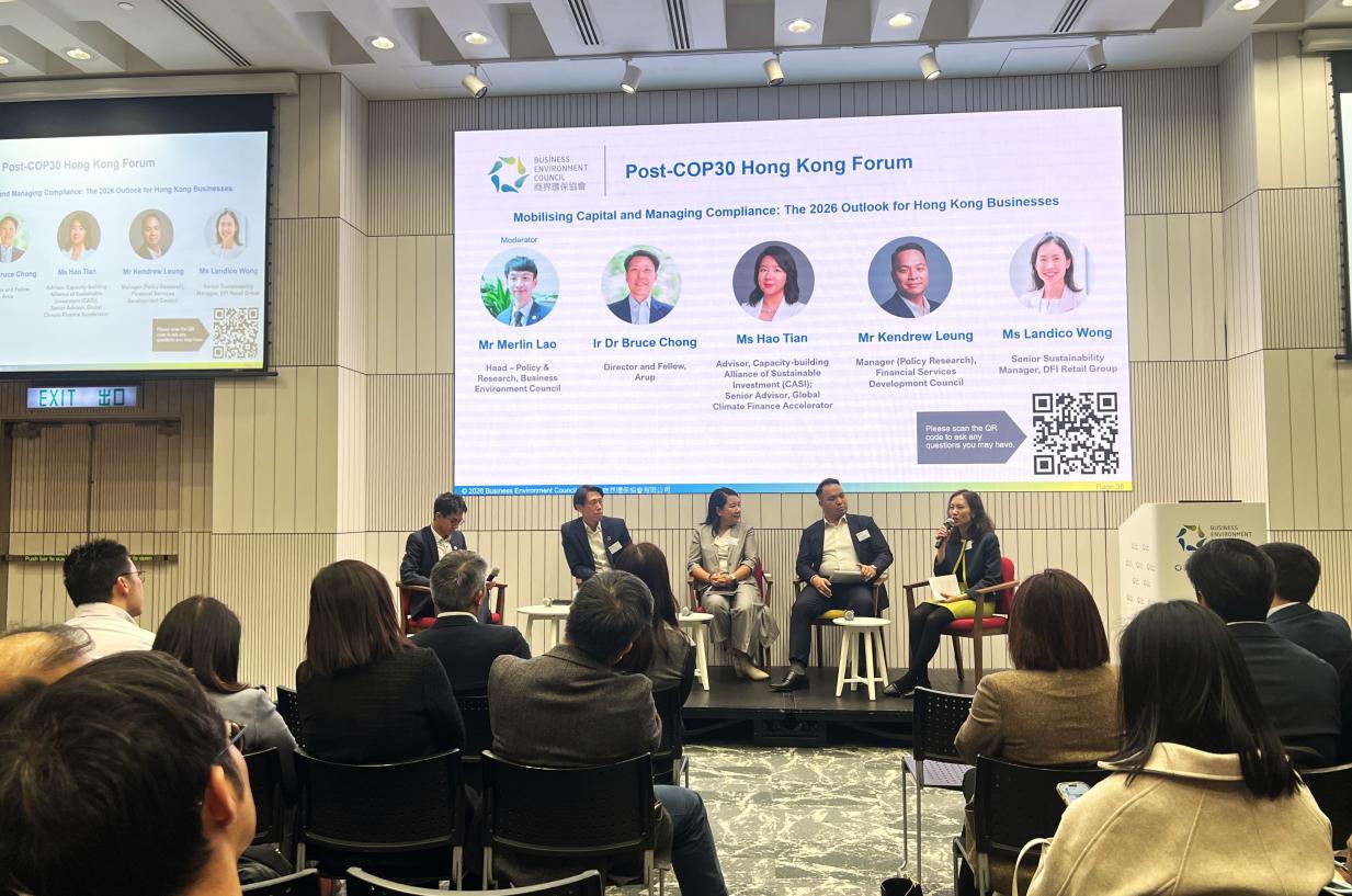 Organised by Business Environment Council ("BEC"), the Post-COP30 Hong Kong Forum convened Hong Kong's COP30 participants, business leaders, and key sustainability stakeholders to decode the outcomes of the conference. This forum focused exclusively on the corporate and financial implications for the region.