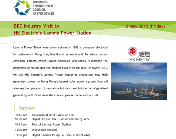 BEC is organising an Industry Visit to HK Electric's Lamma Power Station on 8 May 2015 (Friday)