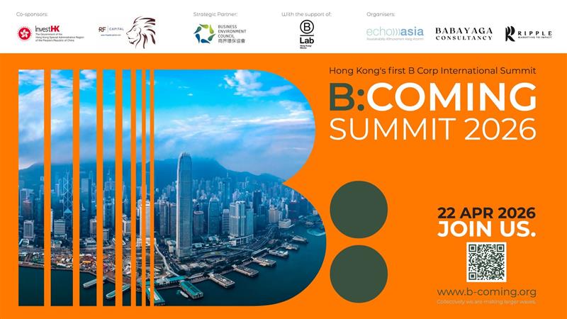 B:COMING is Hong Kong’s first B Corp international summit – a landmark event designed to accelerate the B Corp Movement across the region and build a connected, future-ready ecosystem for businesses that create positive impact for all people and our planet.